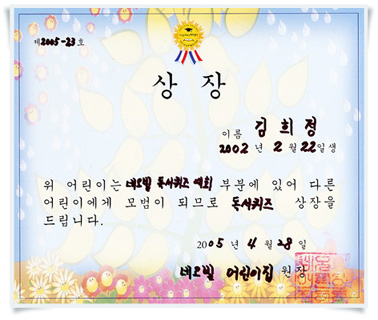 어린이집 독서퀴즈대회서 1등을 했답니다,,,^^*