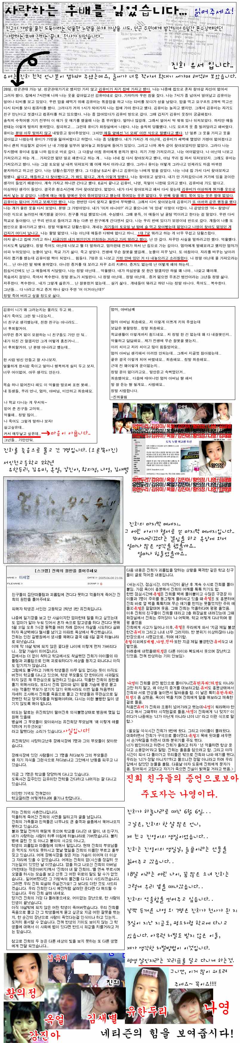 음..현실이 안타까울 따름입니다. 솔직히 저도 이런글은 별로 보고 싶지 않죠..왠만하면 즐거움만 느끼고 싶으니까요.. 이런글을 올리지 말라했던분도 좋은 뜻이지 나쁜 뜻은 없었을지도.. 그런데 요즘 들어 이런 일들이 많이 나돌다 보니.. 가끔은 두렵기도 하더군요.. 만약에 위에 있는 학생중에 비관해서 자살하는 사람이 나온다면 누구의 잘못이 될지... 대가를 받은 것일까요......아님 올린사람의 잘못일까요?....과연...