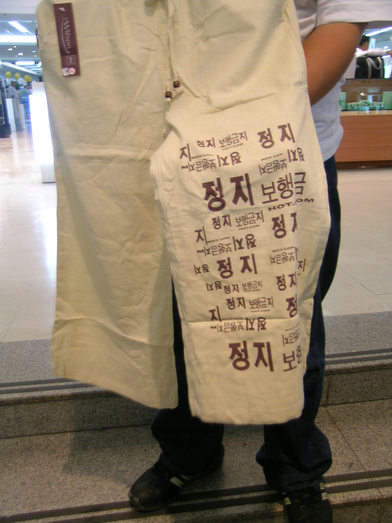 그곳에선 이런것을 판다..인기있다는 이 바지~!!! 보행금지~!