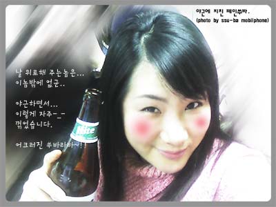일할때..많이는 말고... 딱 한병정도 마시면... 기분이 알딸딸 하니 좋아지면서.. 작업속도가 빨라집니다...ㅋㅋ 잘 받는 날에는 피쳐 한병도 끄떡없소이다...ㅋ (술이 약하신 분께는 권하지 않음..-,.-;)