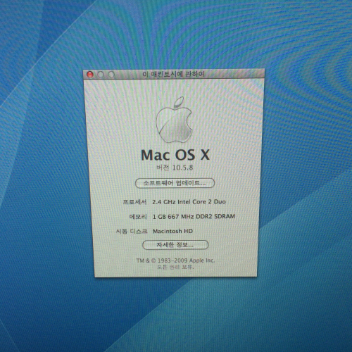프로세서는 2.4GHz Core 2 Duo, 램 1G, 하드 320G 이고
