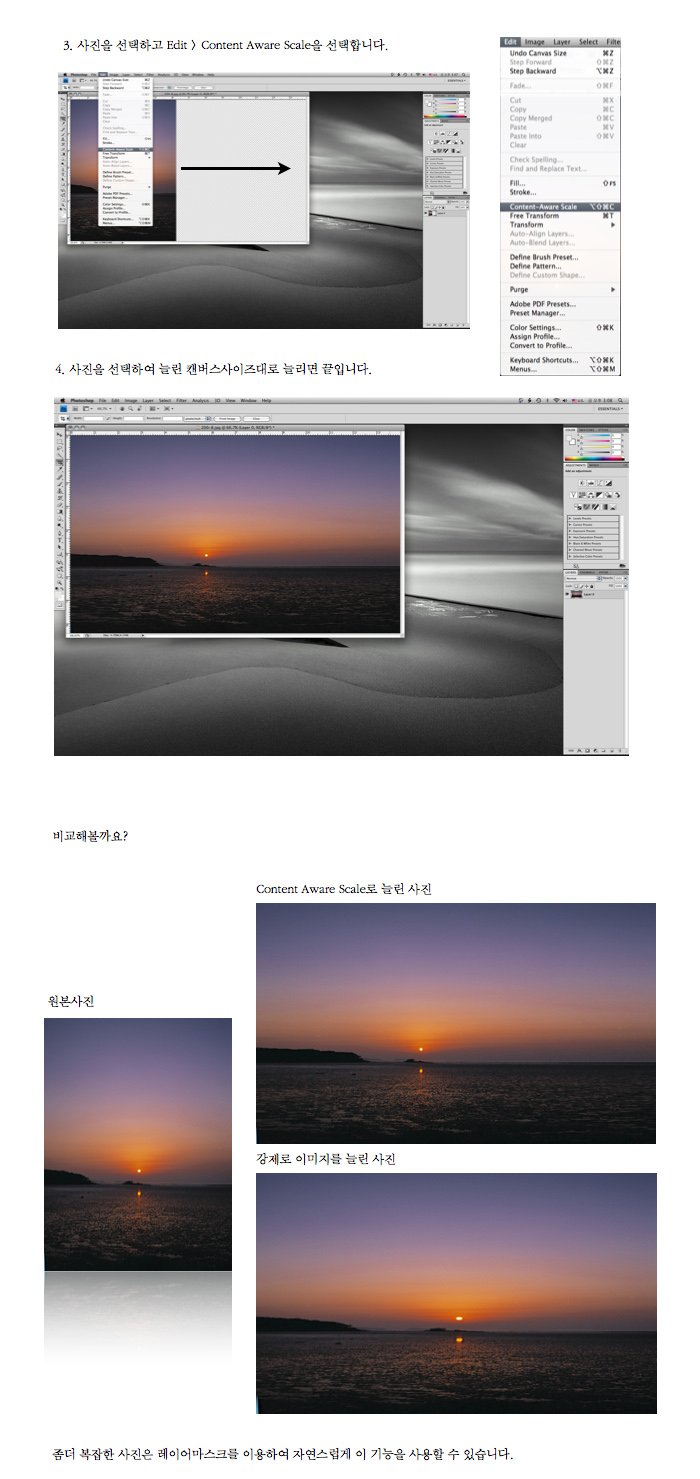 이미지내에서 변형을 시키지 않고자 할것은 선택영역으로 지정해 놓고 하면 좋습니다. 예를들어....사람 같은것들....이미지 변형하면 모양에 변형이 올경우 보기싫은것은... 선택영역으로 만들어 놓고 사용하면 됩니다.