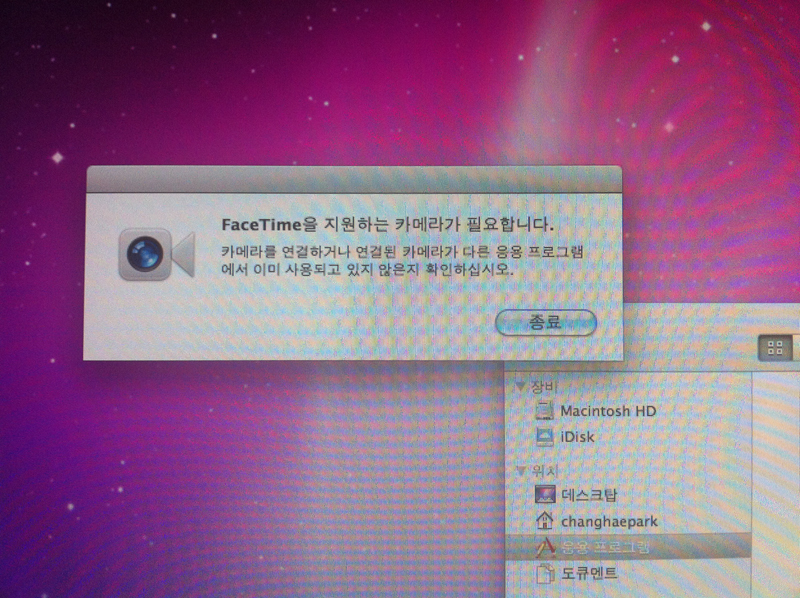페이스타임(facetime) 아이맥에서 안되요 도와주세요~~