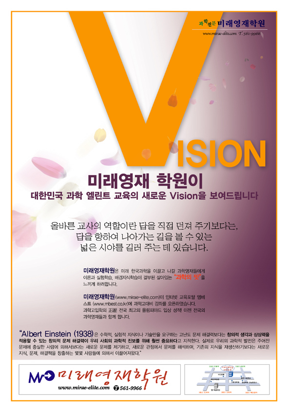 난 다른생각을 가지고 있는데... 모델도 좋지만 레이아웃 컬러티가 조금은 떨어진다고 보는데여,,, 명랑엉아 ^^ 저번에 애기한거 생각나네여 ㅋㅋ 공감미가 전혀 없습니다 해드카피나 부제목들이 제각기 노는듯한 느김이 더강해여 미래영재학원도 로고가 이상하구여 암튼 배이스나 바뀌고 문장이나  카피에선(편집) 바뀐게 없는게 조금 그럽니다.
