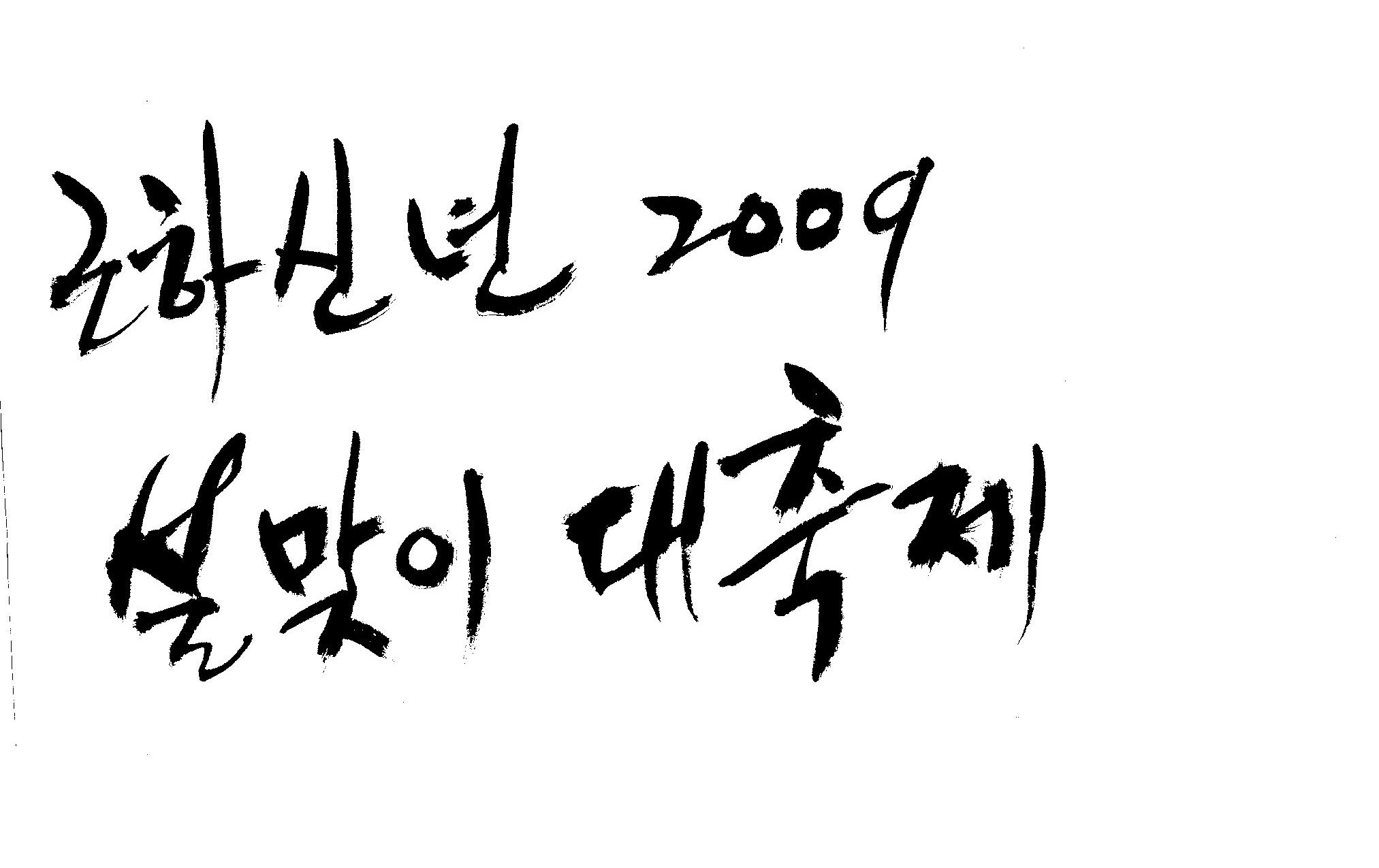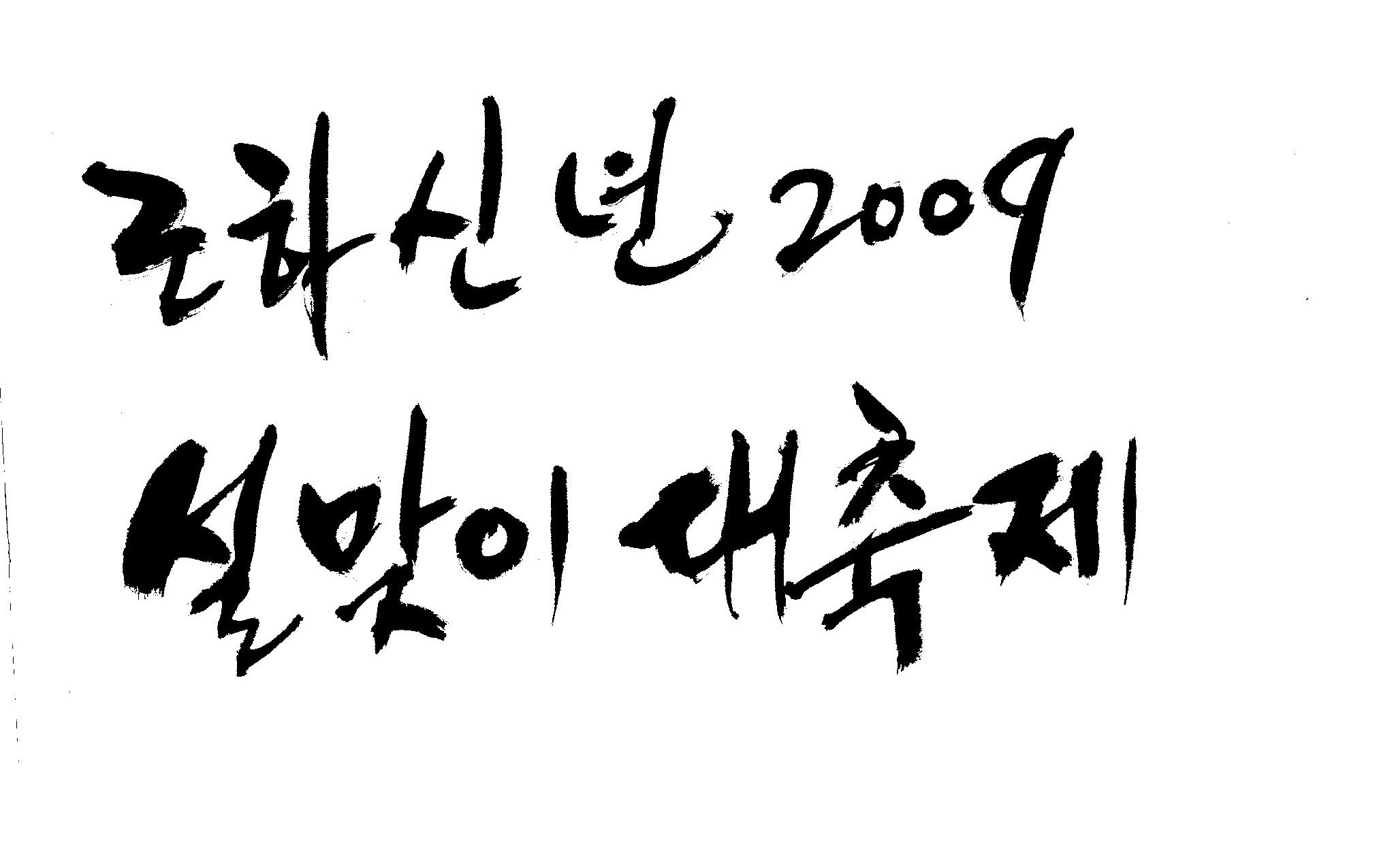 근하신년 2009 설맞이대축제 캘리 부탁드려요. 김철호 일반 3 16743 2009.01.14 10:45 > > A3 전단지 타이틀로 쓰려고 하는데요. > > ''근하신년 2009 설맞이대축제'' 캘리 부탁드립니다. > > 많은도움이 되주셔서 감사합니다. > > 유용하게 쓰세요..