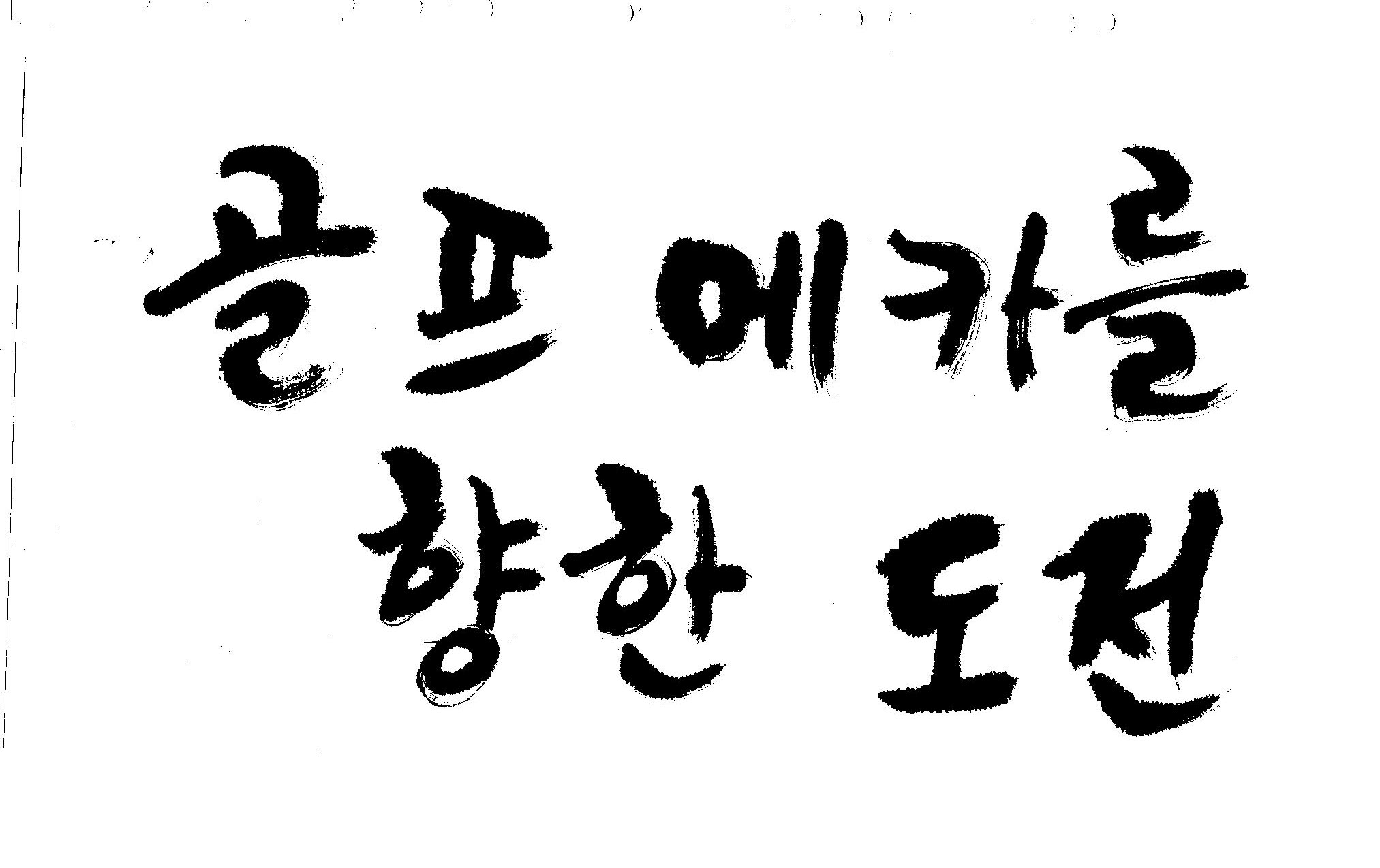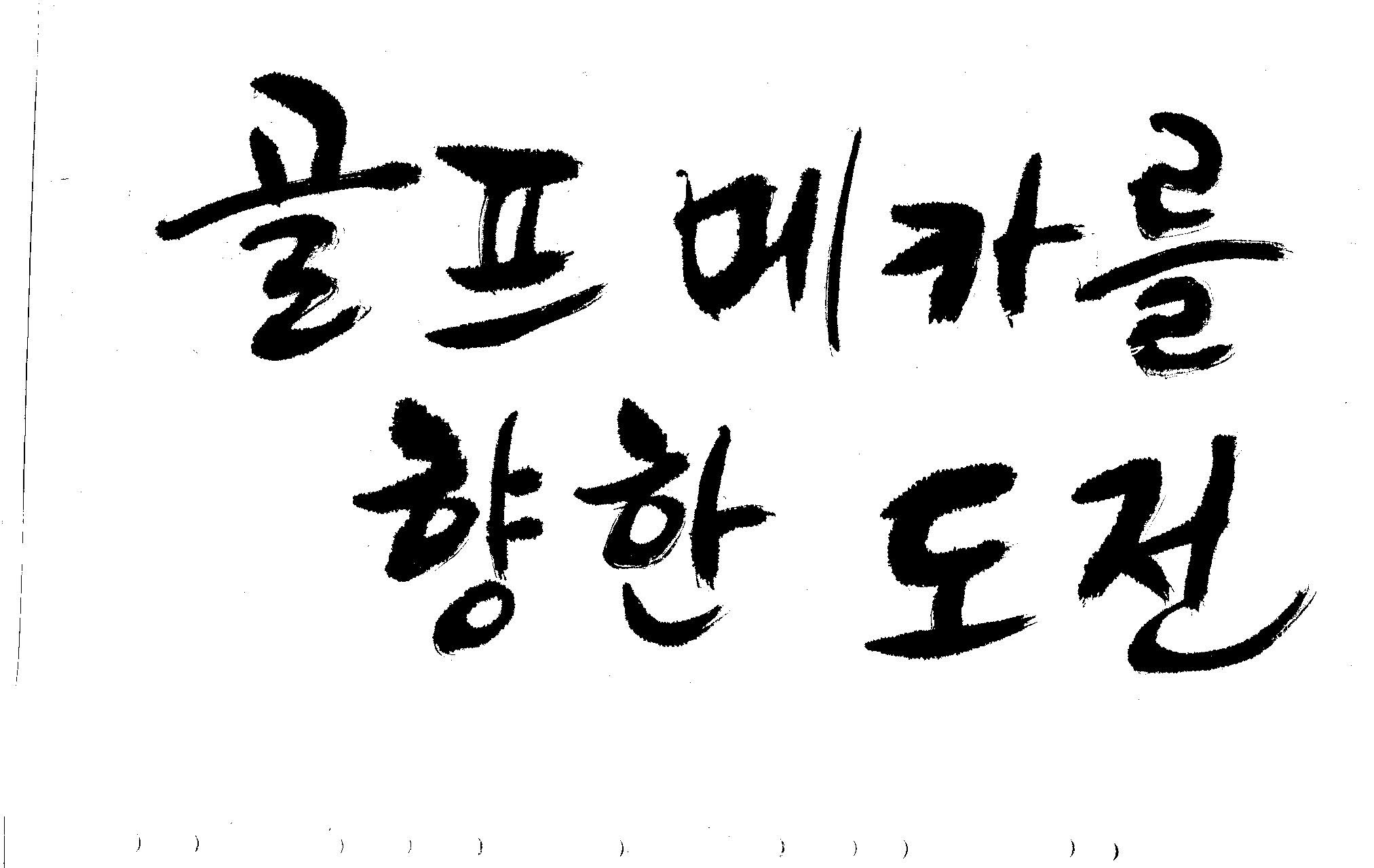 우경의 행복한 캘리세상-골프메카 김철호 일반 0 9029 2009.07.18 10:25 리듬감을 최대한 살리고 ㅡ 스포츠의 운동감과 밝음 기교섞인 획을 배제--일반적인 느낌 굵기변화를 통하여 도전 낱말을 강조 스타일은 비슷하지만 ...한 사람이 썼으니까 ㅎㅎㅎ 서로 다른 글꼴을 올린 것은... 비교하여 보시고... 편집자에게 선택권을 주는 것입니다