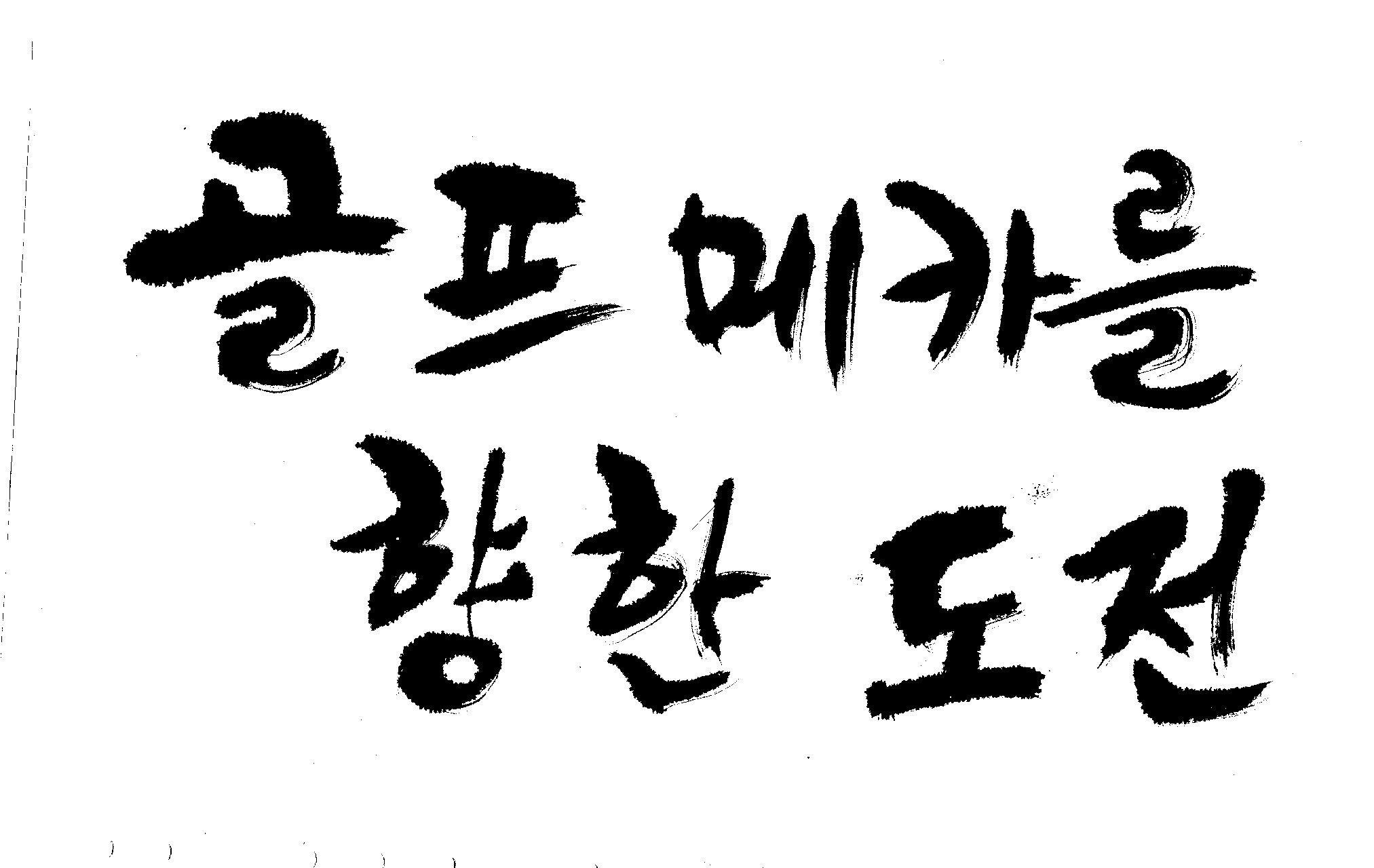 우경의 행복한 캘리세상-골프메카 김철호 일반 1 8703 2009.07.18 10:27 > > > > > 리듬감을 최대한 살리고 ㅡ 스포츠의 운동감과 밝음 > > 기교섞인 획을 배제--일반적인 느낌 > > 굵기변화를 통하여 도전 낱말을 강조 > > 스타일은 비슷하지만 ...한 사람이 썼으니까 ㅎㅎㅎ > > 서로 다른 글꼴을 올린 것은... 비교하여 보시고... > > 편집자에게 선택권을 주는 것입니다 > > >
